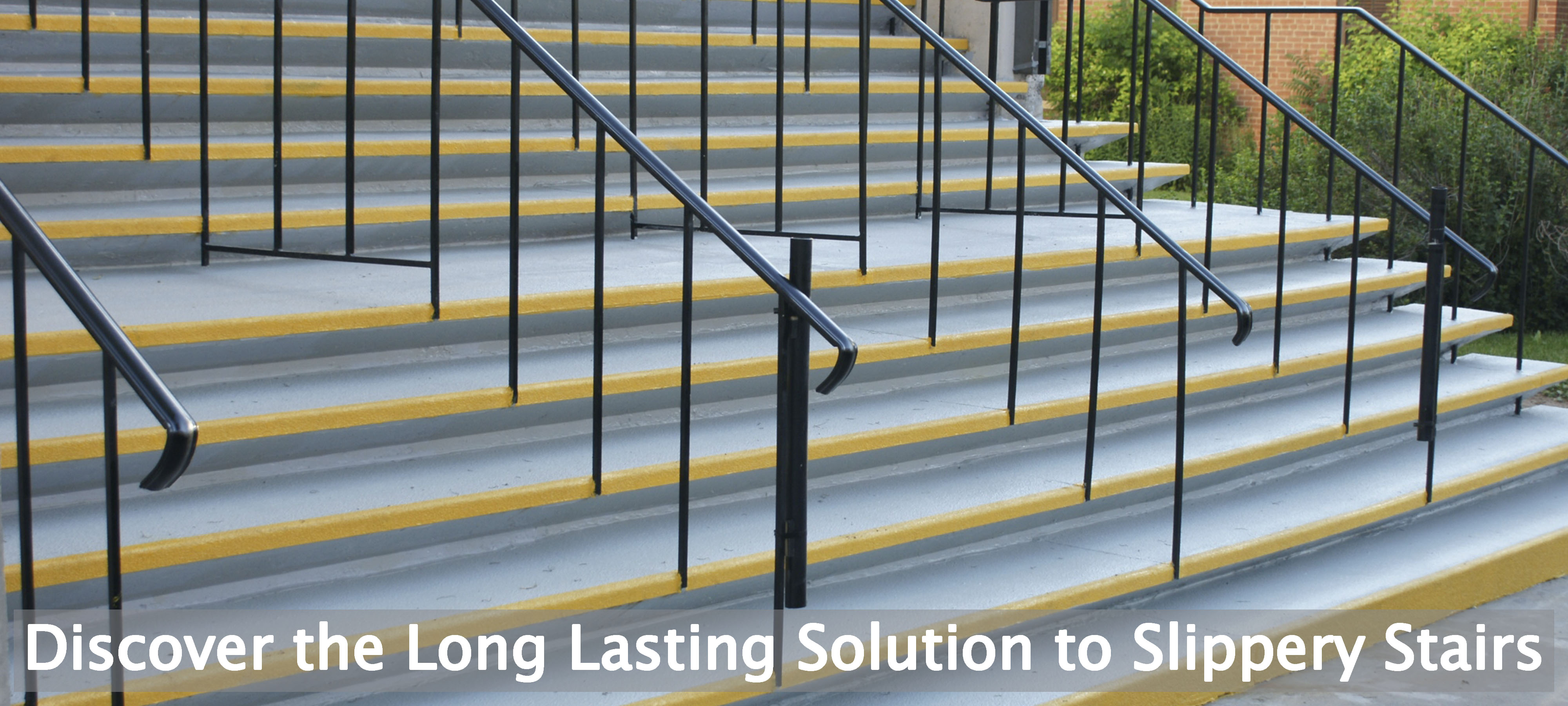 Faced with the safety problem of slippery steps and slick landing on an outdoor stairway at their facility, the facilities engineer at UPS was looking for solutions that would provide long lasting slip resistant stair steps and a platform landing. This stairway was the only way to access the driver dispatch office from the truck terminal parking lot. During rainy weather, the stairs became even more hazardous when the oily surface became wet.